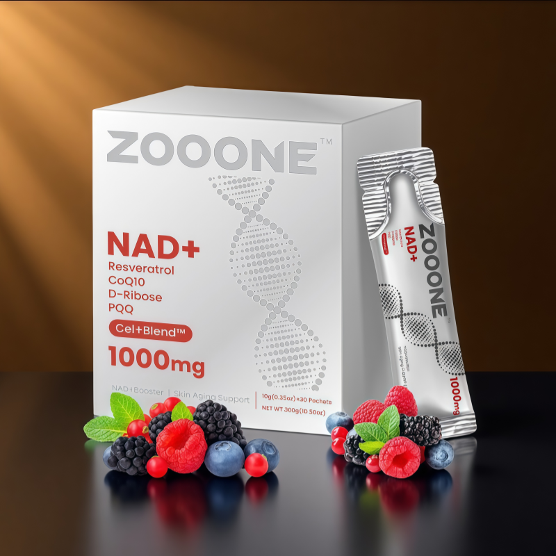 Unlock your body's full potential with Z0OONE1000mg, a scientifically crafted superblend of NAD+,Resveratrol, CoQ10, D-Ribose, PQQ, and Cel+ Blendrm. This premium 1000mg formula combines nature's mostpotent nutrients to create a multi-dimensional wellness support system -boosting cellular energy, defendingagainst oxidative stress, and nurturing long-term vitality from within, Whether you're chasing daily energy,supporting heart and brain health, or embracing graceful aging,Z00ONE delivers targeted results you can feel.